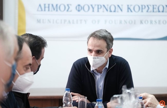 Ο Κυριάκος Μητσοτάκης είχε συνομιλία με τους κατοίκους και στη συνέχεια μετέβη στο Διοικητήριο Φούρνων Κορσεών, όπου συναντήθηκε με τον Δήμαρχο Καρύδη, τον Αντιδήμαρχο Οικονομικών Υπηρεσιών Δημήτρη Αμοργιανό, τον Αντιδήμαρχο Εποπτείας και ευθύνης όλων των υπηρεσιών Νίκο Μελά και τον Αντιδήμαρχο Αλιείας και διαχείρισης των Ευρωπαϊκών Προγραμμάτων Παναγιώτη Μύτικα.