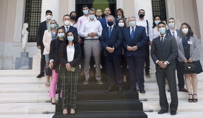 Τους νέους συνόδευαν, κατά την επίσκεψή τους στο Μέγαρο Μαξίμου, ο Υφυπουργός Εξωτερικών, αρμόδιος για τον Απόδημο Ελληνισμό, Κωνσταντίνος Βλάσης, ο Επίτροπος της Κυπριακής Προεδρίας αρμόδιος για Ανθρωπιστικά Θέματα και Θέματα Αποδήμων, Φώτης Φωτίου και ο Γενικός Γραμματέας Απόδημου Ελληνισμού και Δημόσιας Διπλωματίας, Ιωάννης Χρυσουλάκης.