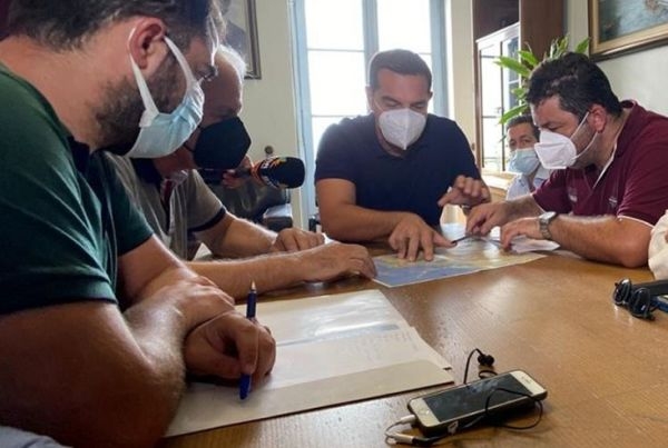 Νωρίτερα, στη συνάντηση που είχε ο κ. Τσίπρας με τον Δήμαρχο Αιδηψού – Ιστιαίας, στο Λιμεναρχείο, ο πρόεδρος του ΣΥΡΙΖΑ ρώτησε εάν «υπήρξε συνδρομή από εναέρια μέσα πυρόσβεσης τις κρίσιμες ώρες που ξεκίνησε η φωτιά», με τον δήμαρχο Αιδηψού, Γιάννη Κοντζιά, να απαντά ότι «προσπάθεια από αέρος δυστυχώς δεν υπήρξε, δεν είδα εναέρια μέσα». «Καθόλου;», ρώτησε ο κ. Τσίπρας. «Εκεί που βρισκόμουν εγώ, στα όρια των δύο δήμων», πρόσθεσε ο δήμαρχος, «γιατί η πραγματικότητα είναι ότι λόγω των πυκνών καπνών δεν μπορούσα να έχω εικόνα για όλο το μέτωπο της πυρκαγιάς». Παράλληλα, πρόσθεσε πως «επίγειες δυνάμεις της Πυροσβεστικής ήταν παρούσες αλλά η αλήθεια είναι ότι δεν μπορούσαν να κάνουν πολλά πράγματα, απλά προσπαθούσαν να ανακόψουν την πυρκαγιά να μην περάσει σε κατοικημένη περιοχή».