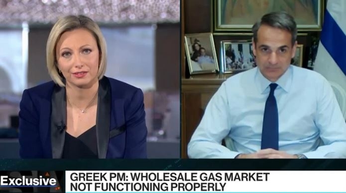 Μητσοτάκης στο Bloomberg: Προτείνω μία βραχυπρόθεσμη παρέμβαση στην τιμολόγηση του φυσικού αερίου