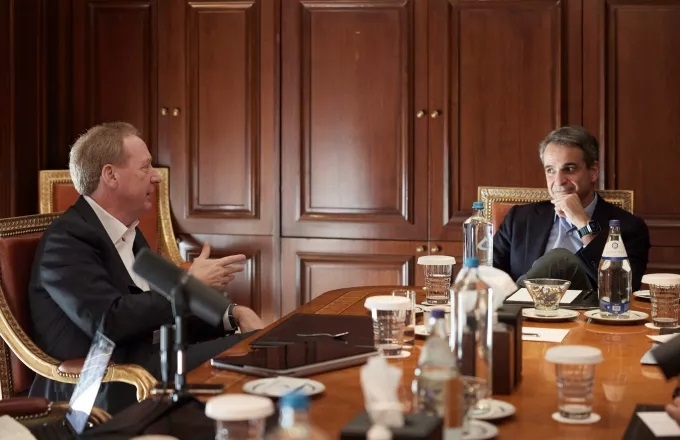 Ο Πρωθυπουργός Κυριάκος Μητσοτάκης συναντήθηκε το πρωί στο Μέγαρο Μαξίμου με τον Πρόεδρο της Microsoft, Brad Smith, στο περιθώριο των εργασιών του forum «The Trilateral Commission».