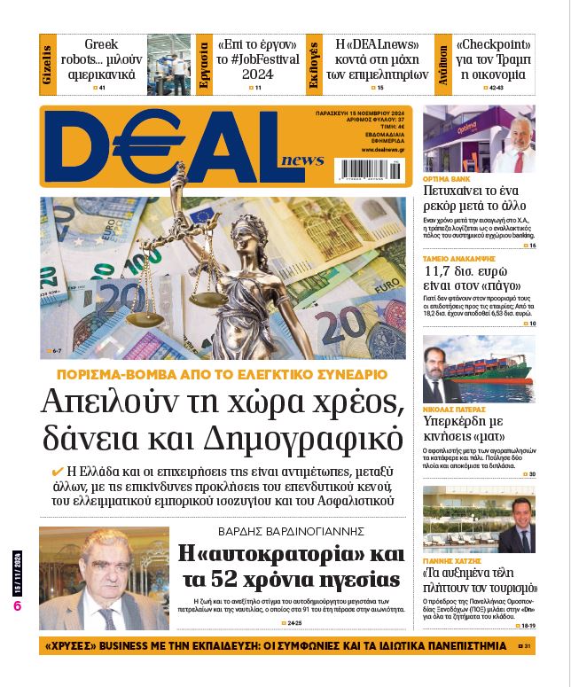 ΠΡΩΤΟΣΕΛΙΔΑ 15-11-2024 15 Νοεμβρίου 2024 UPD: 29 Νοεμβρίου 2024 02:19 FacebookTwitterWhatsApp ΡΟΗ ΕΙΔΗΣΕΩΝ ΤΟΥΡΙΣΜΟΣ Διεθνής διάκριση για τη Νάξο στη λίστα των καλύτερων προορισμών του 2026 Newsroom 2 - 16 Ιανουαρίου 2026 ΤΕΧΝΟΛΟΓΙΑ Οι κυβερνοεπιθέσεις απειλούν τις επιχειρήσεις διεθνώς – Πρώτη ανησυχία στην Ελλάδα η Τεχνητή Νοημοσύνη Newsroom 2 - 16 Ιανουαρίου 2026 ΟΙΚΟΝΟΜΙΑ Τράπεζα της Ελλάδος: Πλεόνασμα 973 εκατ. ευρώ στις ταμειακές ροές του 2025 Newsroom 2 - 16 Ιανουαρίου 2026 ΕΠΙΧΕΙΡΗΣΕΙΣ Βιομηχανία: Αυξάνεται η ανησυχία για το κόστος ενέργειας και τους χειρισμούς ΥΠΕΝ Newsroom 2 - 16 Ιανουαρίου 2026 ΔΙΑΒΑΣΤΕ ΑΚΟΜΗ ΠΡΩΤΟΣΕΛΙΔΑ Διαβάστε αυτή την Παρασκευή στην DEALnews 15 Ιανουαρίου 2026 ΠΡΩΤΟΣΕΛΙΔΑ Διαβάστε στην DEALnews 8 Ιανουαρίου 2026 ΠΡΩΤΟΣΕΛΙΔΑ Διαβάστε στην DEALnews 1 Ιανουαρίου 2026 ΠΡΩΤΟΣΕΛΙΔΑ Διαβάστε εκτάκτως την Τετάρτη στην DEALnews 23 Δεκεμβρίου 2025 ΠΡΩΤΟΣΕΛΙΔΑ Διαβάστε στην DEALnews 18 Δεκεμβρίου 2025 ΠΡΩΤΟΣΕΛΙΔΑ Διαβάστε στην DEALnews 11 Δεκεμβρίου 2025 ΠΡΩΤΟΣΕΛΙΔΑ Διαβάστε αυτή την Παρασκευή στην DEALnews 4 Δεκεμβρίου 2025 ΠΡΩΤΟΣΕΛΙΔΑ Διαβάστε στην DEALnews 27 Νοεμβρίου 2025 ΠΡΩΤΟΣΕΛΙΔΑ Διαβάστε στην DEALnews 20 Νοεμβρίου 2025 ΠΡΩΤΟΣΕΛΙΔΑ Διαβάστε στην DEALnews 13 Νοεμβρίου 2025