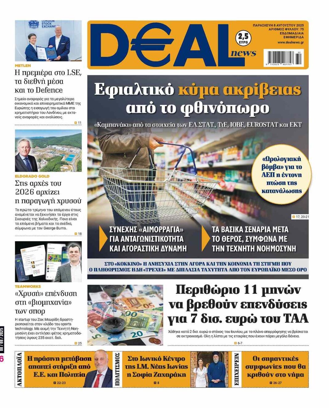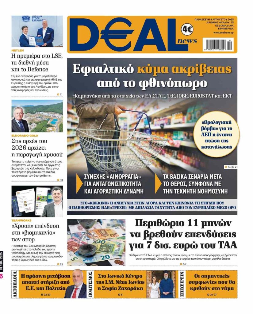 🟧 Η DEALnews κυκλοφορεί αυτή την Παρασκευή στα περίπτερα, ανανεωμένη, με πλούσια ύλη, ρεπορτάζ και αναλύσεις από όλο τον κόσμο του επιχειρείν και της οικονομίας.