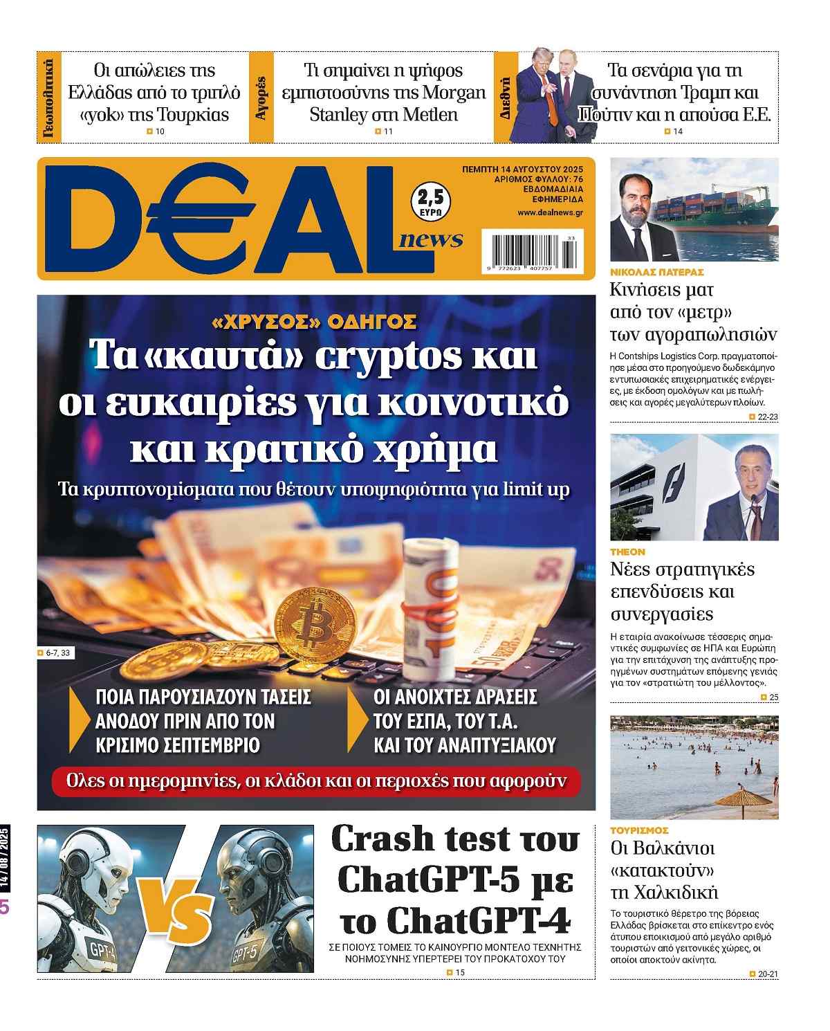 🟧 Η DEALnews κυκλοφορεί εκτάκτως την Πέμπτη στα περίπτερα, ανανεωμένη, με πλούσια ύλη, ρεπορτάζ και αναλύσεις από όλο τον κόσμο του επιχειρείν και της οικονομίας.
