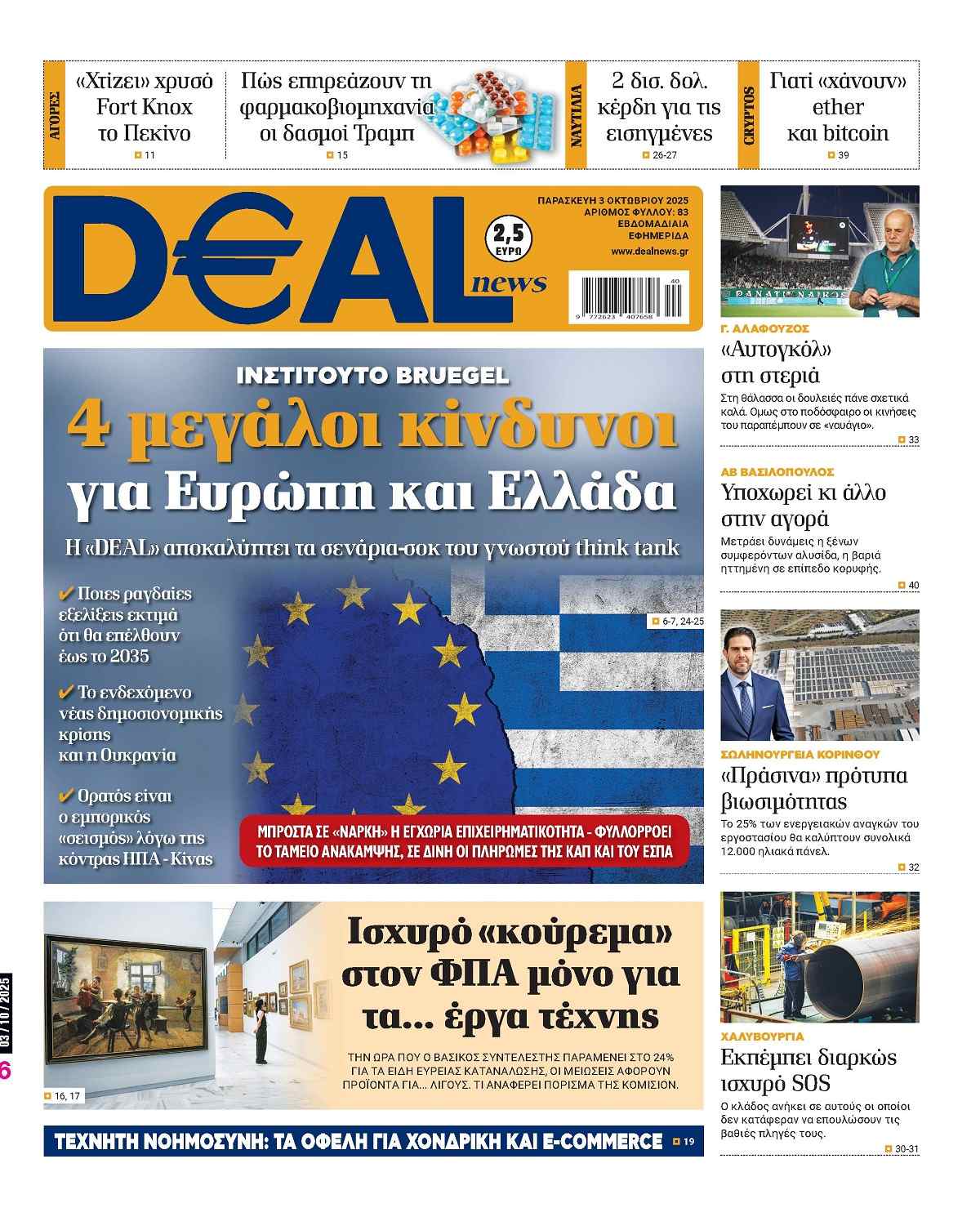 👉 Ινστιτούτο Bruegel – 4 μεγάλοι κίνδυνοι για Ευρώπη και Ελλάδα – Η «DEAL» αποκαλύπτει τα σενάρια-σοκ του γνωστού think tank – Ποιες ραγδαίες εξελίξεις εκτιμά ότι θα επέλθουν έως το 2035 – Το ενδεχόμενο νέας δημοσιονομικής κρίσης και η Ουκρανία – Ορατός είναι ο εμπορικός «σεισμός» λόγω της κόντρας ΗΠΑ – Κίνας – Μπροστά σε «νάρκη» η εγχώρια επιχειρηματικότητα – Φυλλορροεί το Ταμείο Ανάκαμψης, σε δίνη οι πληρωμές της ΚΑΠ και του ΕΣΠΑ