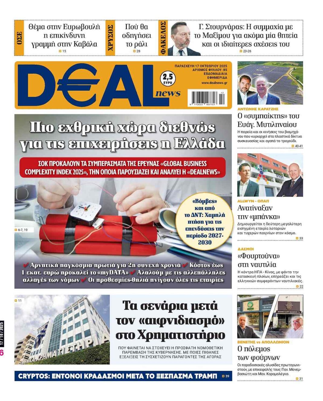 🟧 Η DEALnews κυκλοφορεί αυτή την Παρασκευή στα περίπτερα, ανανεωμένη, με πλούσια ύλη, ρεπορτάζ και αναλύσεις από όλο τον κόσμο του επιχειρείν και της οικονομίας.