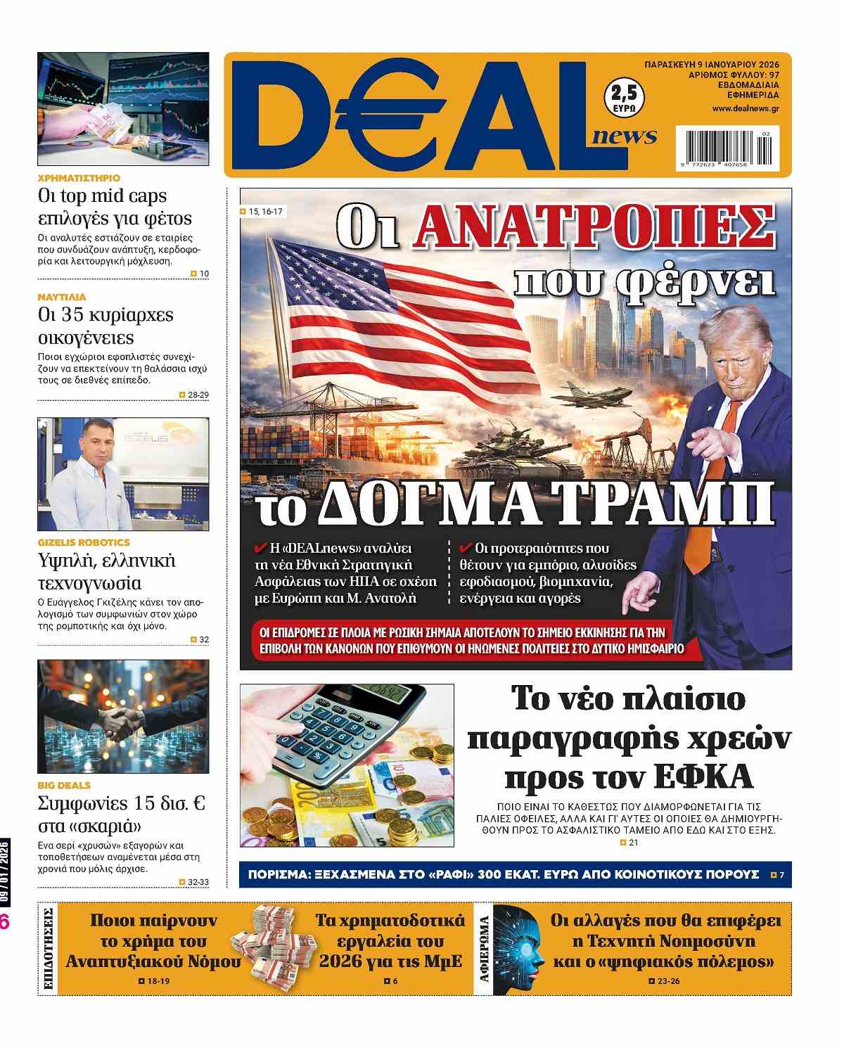 🟧 Η DEALnews κυκλοφορεί αυτή την Παρασκευή στα περίπτερα, ανανεωμένη, με πλούσια ύλη, ρεπορτάζ και αναλύσεις από όλο τον κόσμο του επιχειρείν και της οικονομίας.