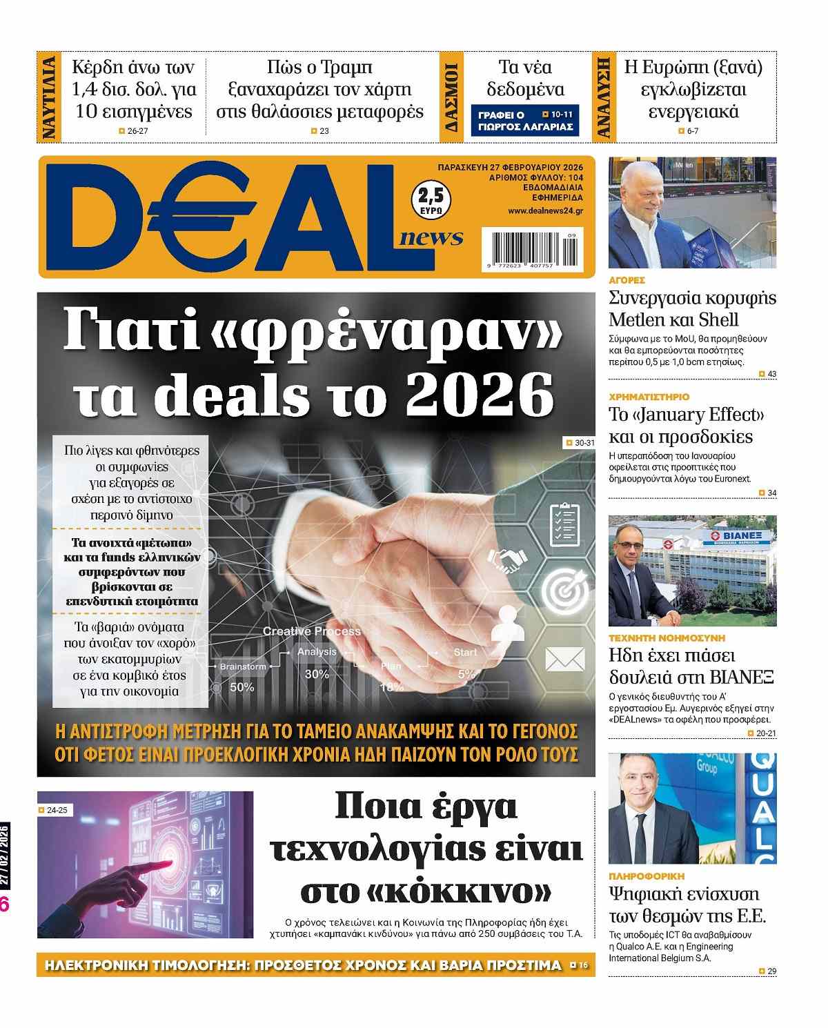 🟧 Η DEALnews κυκλοφορεί αυτή την Παρασκευή στα περίπτερα, ανανεωμένη, με πλούσια ύλη, ρεπορτάζ και αναλύσεις από όλο τον κόσμο του επιχειρείν και της οικονομίας.