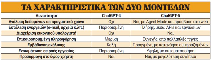 Το πρωτοεμφανιζόμενο εδώ και λίγες ημέρες ChatGPT-5 «υπόσχεται» ότι δεν είναι απλώς η επόμενη έκδοση ενός γνωστού εργαλείου αλλά ότι είναι ένα ολοκληρωμένο, ενεργό σύστημα Τεχνητής Νοημοσύνης (Τ.Ν.) το οποίο μπορεί να μετατραπεί στον «ψηφιακό σας συνεργάτη». Δεν περιορίζεται μόνο να απαντά σε ερωτήσεις. Αναλαμβάνει εργασίες, κάνει αυτόνομη έρευνα, επεξεργάζεται δεδομένα και παραδίδει έτοιμες, τεκμηριωμένες λύσεις.