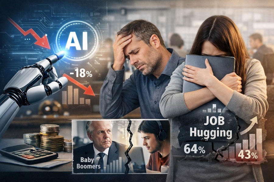 Η Tεχνητή Nοημοσύνη (T.N.) μπαίνει πια στην καθημερινότητα της εργασίας με ταχύτητα-ρεκόρ, αλλά οι άνθρωποι δεν νιώθουν ασφαλέστεροι, νιώθουν πιο εκτεθειμένοι. Το 45% των εργαζομένων δηλώνει καθημερινή χρήση της T.N. (άνοδος 13%), την ώρα που η εμπιστοσύνη στη χρήση της τεχνολογίας πέφτει κατά 18% και το συνολικό σκορ του Παγκόσμιου Βαρόμετρου Ανθρώπινου Δυναμικού υποχωρεί στο 67%. Το αποτέλεσμα είναι ένα παγκόσμιο «σφίξιμο» στη θέση εργασίας, το job hugging, όχι από αφοσίωση, αλλά από ανάγκη για σταθερότητα.