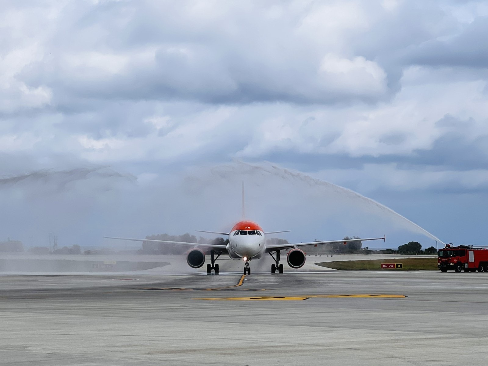 Στην «πίστα» του αεροδρομίου κατά την προσγείωση του αεροπλάνου, ήταν παρών ο περιφερειάρχης Νοτίου Αιγαίου Γιώργος Χατζημάρκος, ενώ όχημα της Πυροσβεστικής Υπηρεσίας σχημάτισε αψίδα για το καλωσόρισμά τους.