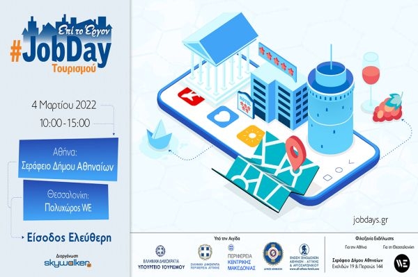 Site: https://jobdays.gr/jobdays2022/jobdaytourismoy-2022, Facebook Event: #JobDay Τουρισμού – Αθήνα & #JobDay Τουρισμού – Θεσσαλονίκη