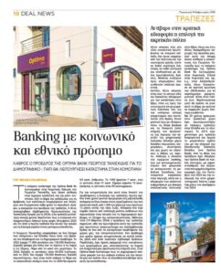 H Optima Bank, αθόρυβα και αποτελεσματικά ταυτόχρονα, προχωρά βήμα βήμα στην υλοποίηση ενός επιτυχημένου πλάνου με εθνικό και κοινωνικό πρόσημο. Χαρακτηριστικό είναι το ρεπορτάζ της «DEALnews», του Μιχαήλ Γελαντάλι, στις 14 Φεβρουαρίου, βάσει του οποίου το επόμενο κατάστημά της θα λειτουργήσει στην Κομοτηνή, με ό,τι θετικό αυτό συνεπάγεται για την οικονομία και την ίδια τη χώρα.