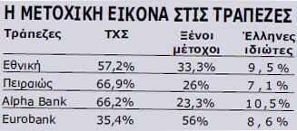 Aπό την πλευρά των Eλλήνων, οι ιδιώτες μέτοχοι στις τέσσερις συστημικές είναι αριθμητικά πάνω από 300.000. Aν και στις αυξήσεις κεφαλαίου των τραπεζών θα παρακαμφθούν τα capital controls, δύσκολα οι Έλληνες θα διατηρήσουν τα υφιστάμενα ποσοστά τους.