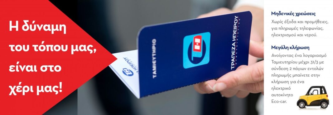 Η Συνεταιριστική ΤράπεζαΗπείρου στηρίζει έμπρακτα την τοπική οικονομία, επανεπενδύοντας τα χρήματα της ΗπείρουστηνΉπειρο με στόχο την τοπική ανάπτυξη, γιατί η δύναμη του τόπου μας είναι στο χέρι μας.