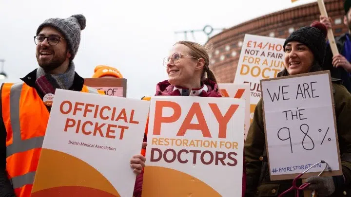 Ο Βρετανικός Ιατρικός Σύλλογος (BMA), το συνδικάτο που εκπροσωπεί τους γιατρούς, ζητεί αύξηση 35%, εξηγώντας ότι τα μέλη του έχουν υποστεί πραγματική μείωση μισθού κατά 26% τα τελευταία 15 χρόνια. Τον Μάρτιο οι ειδικευόμενοι γιατροί είχαν πραγματοποιήσει τριήμερες κινητοποιήσεις.