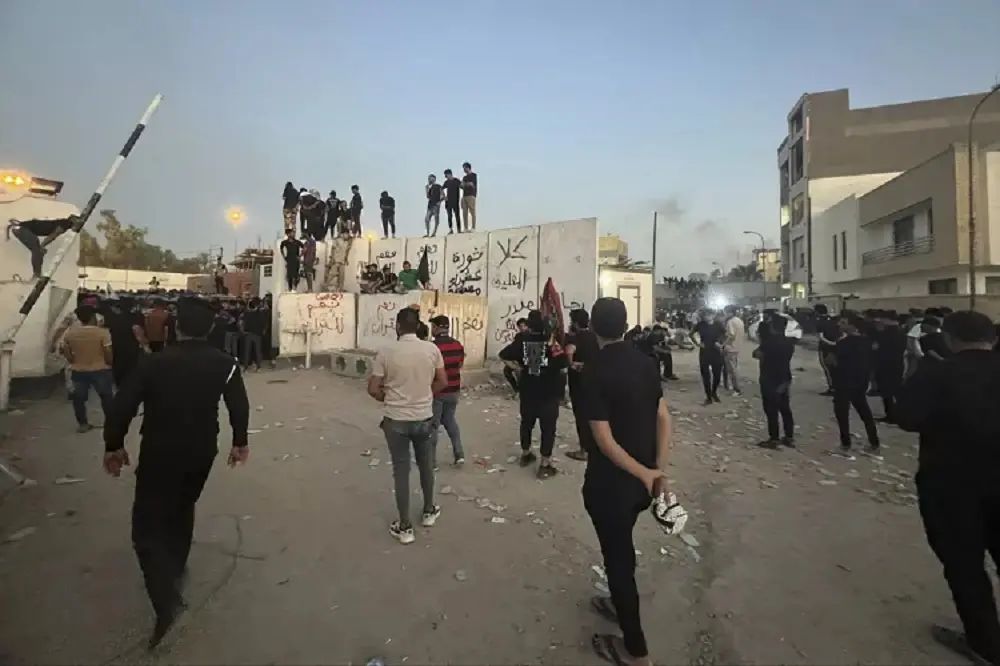 Υψωνόταν στήλη καπνού από το κτιριακό συγκρότημα όπου βρίσκεται η πρεσβεία της Σουηδίας, διαπίστωσε ανταποκριτής του Γαλλικού Πρακτορείου στην περιοχή. Είχαν αναπτυχθεί μονάδες αντιμετώπισης ταραχών της ιρακινής αστυνομίας, που χρησιμοποίησαν εκτοξευτήρες νερού υπό πίεση και ηλεκτροφόρα γκλομπ για να απωθήσουν διαδηλωτές, οι οποίοι πέταγαν πέτρες κατά των δυνάμεων επιβολής της τάξης.