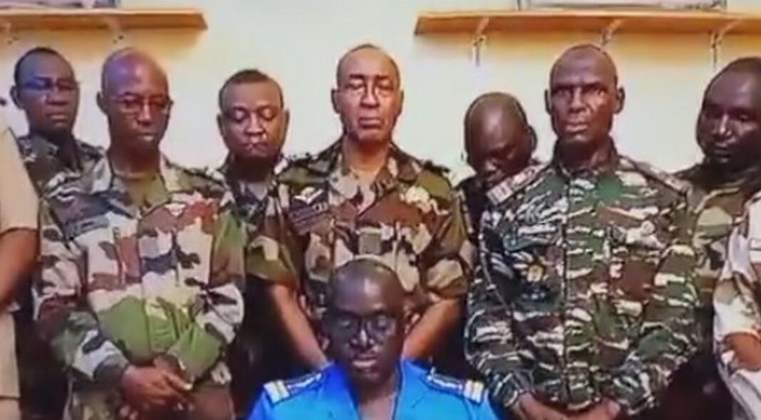 Δέκα πραξικοπηματίες αξιωματικοί των ενόπλων δυνάμεων και των σωμάτων ασφαλείας του Νίγηρα, χώρας της Αφρικής που αιματοκυλίζουν οργανώσεις τζιχαντιστών, ως τώρα συμμάχου-κλειδιού της Δύσης στο Σαχέλ, ανακοίνωσαν τη νύχτα της Τετάρτης προς Πέμπτη μέσω της κρατικής τηλεόρασης πως ανέτρεψαν τον δημοκρατικό εκλεγμένο πρόεδρο Μοαμέντ Μπαζούμ, στην εξουσία από το 2021.