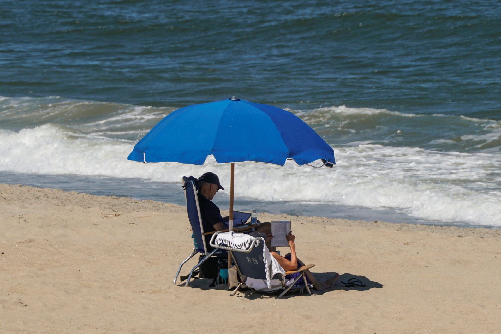 Ο Τζο Μπάιντεν και η Τζιλ Μπάιντεν απόλαυσαν μία μέρα στην παραλία Rehoboth στο Ντέλαγουερ, καθισμένοι στη σκιά μιας ομπρέλας, την ώρα που οι λουόμενοι περνούσαν και έβγαζαν φωτογραφίες το ζεύγος.