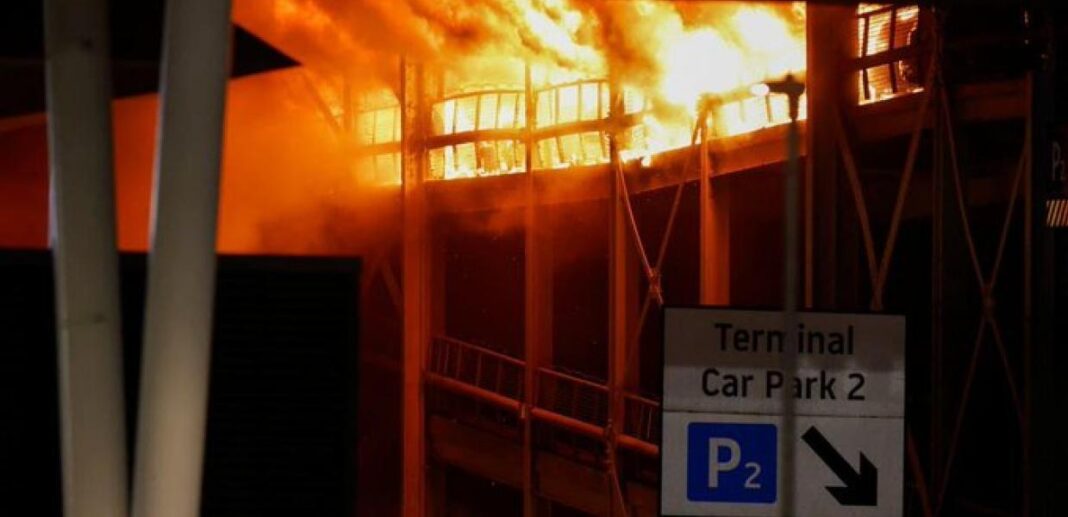 Η πυρκαγιά στο πολυώροφο πάρκινγκ υπ’ αριθμόν 2 εκδηλώθηκε σε αυτοκίνητο, εξαπλώθηκε σε πολλά άλλα και προκάλεσε την “μερική κατάρρευση” τμήματός του, εξήγησε η διεύθυνση του αεροδρομίου, που απέχει περίπου σαράντα χιλιόμετρα από το κέντρο της πρωτεύουσας της Βρετανίας και χρησιμοποιείται κυρίως από αερομεταφορείς χαμηλού κόστους, μέσω X (του πρώην Twitter).
