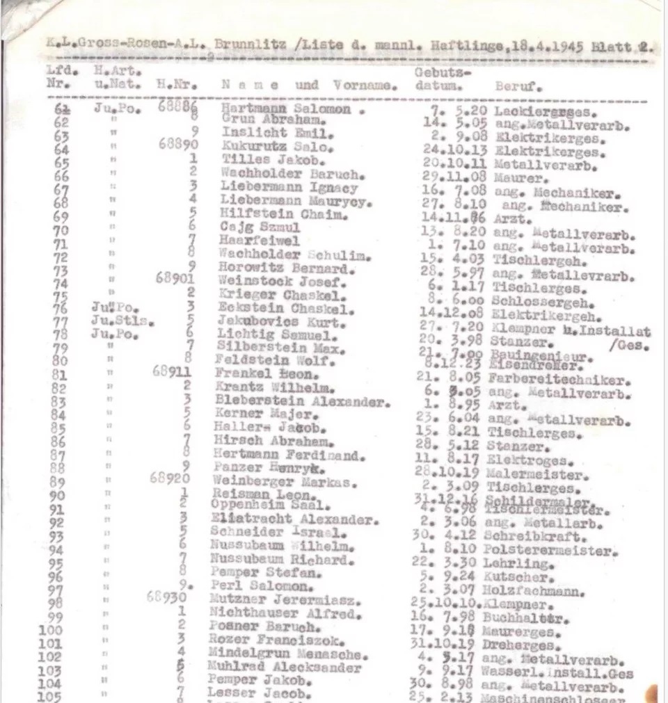 Είναι επίσης ένας από τους τρεις μόνο καταλόγους που υπάρχουν, ο ένας στεγάζεται στο Μουσείο Ολοκαυτώματος στην Ουάσιγκτον ενώ οι άλλοι δύο βρίσκονται στο Κέντρο Μνήμης του Ολοκαυτώματος του Ισραήλ Yad Vashem, στην Ιερουσαλήμ.