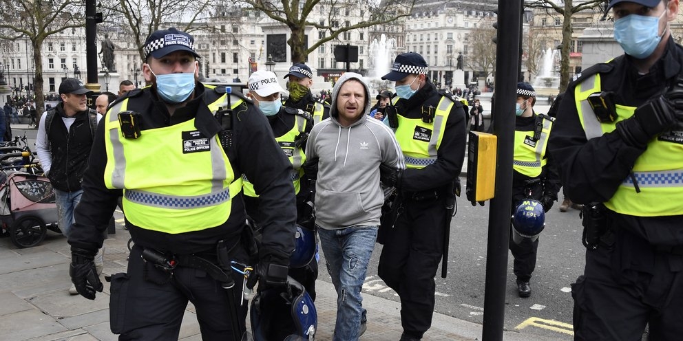 Η κινητοποίηση, που άρχισε στο Χάιντ Παρκ το μεσημέρι, συνεχίστηκε στο κέντρο του Λονδίνου. Ομάδα διαδηλωτών επέστρεψε αργότερα στο πάρκο, όπου εκτόξευσε αντικείμενα εναντίον αστυνομικών. «Αρκετοί» από τους αστυνομικούς «τραυματίστηκαν εξαιτίας στοχευμένων επιθέσεων», ανέφερε σε ανακοίνωση Τύπου ο υποδιευθυντής της αστυνομίας της βρετανικής πρωτεύουσας Λόρενς Τέιλορ, που επέβλεψε την επιχείρηση για την επιβολή της τάξης. «Είναι εντελώς απαράδεκτο και θλιβερό το ότι αστυνομικοί επιφορτισμένοι με την εφαρμογή κανόνων που εφαρμόζονται για την προστασία όλων μας μετατρέπονται σε θύματα βίαιων επιθέσεων», πρόσθεσε.