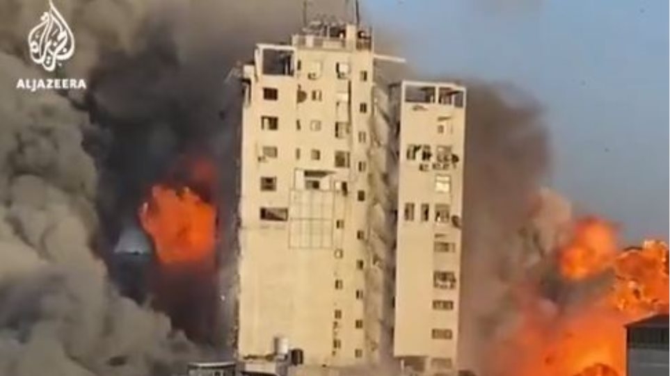 Κτίριο 12 ορόφων στη Γάζα, όπου στεγάζονται τα γραφεία του πρακτορείου ειδήσεων Associated Press, με έδρα τις ΗΠ, καθώς και του τηλεοπτικού δικτύου Al Jazeera, με έδρα το Κατάρ, κατέρρευσε σήμερα (15/05), αφότου επλήγη από ισραηλινούς πυραύλους.