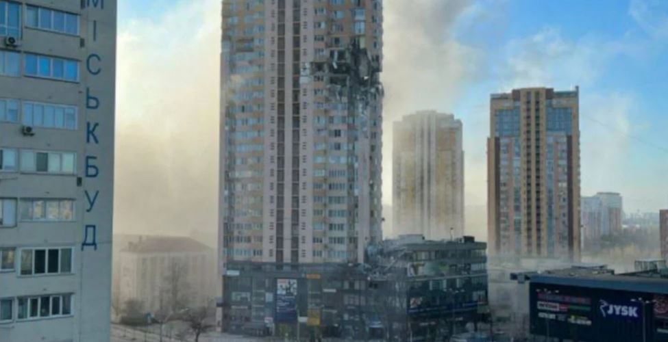 Η πολυκατοικία βρίσκεται στον αριθμό 6 της λεωφόρου Λομπανόφσκι στο Κίεβο μεταδίδουν οι ουκρανικές υπηρεσίες αντιμετώπισης εκτάκτων αναγκών. Βίντεο που έδωσε στη δημοσιότητα το γραφείο Τύπου της ουκρανικής προεδρίας καταγράφει την έκρηξη της οβίδας σε διαμέρισμα με χαλάσματα να εκτινάσσονται προς όλες τις κατευθύνσεις και καπνό να γεμίζει το χώρο.