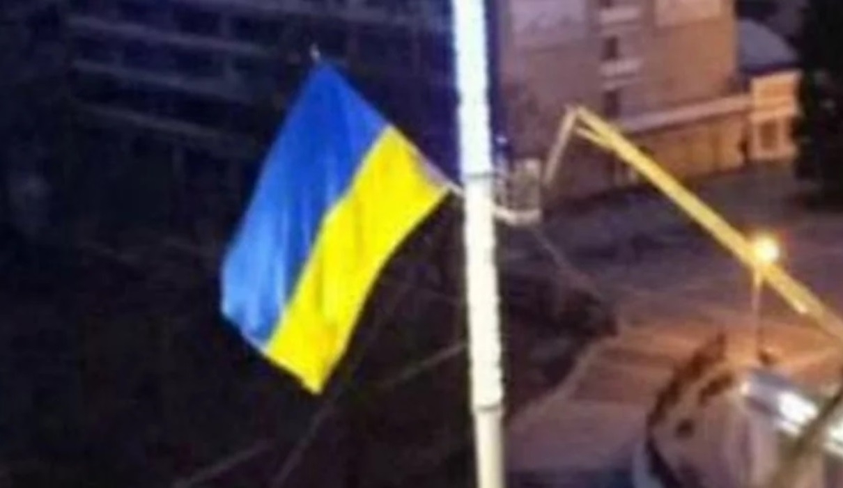 Η μεγάλη ουκρανική σημαία που δέσποζε στην Πλατεία Νίκης της Μελιτόπολης, αφαιρέθηκε σήμερα από τις ρωσικές δυνάμεις.
