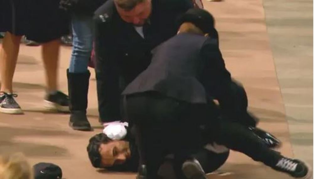 Χάος επικράτησε στην Αίθουσα του Γουέστμινστερ το βράδυ της Παρασκευής, όταν ένας άνδρας κινήθηκε προς το φέρετρο της βασίλισσας Ελισάβετ και το άγγιξε με αποτέλεσμα η ασφάλεια να τον ακινητοποιήσει και στη συνέχεια η αστυνομία να τον συλλάβει.