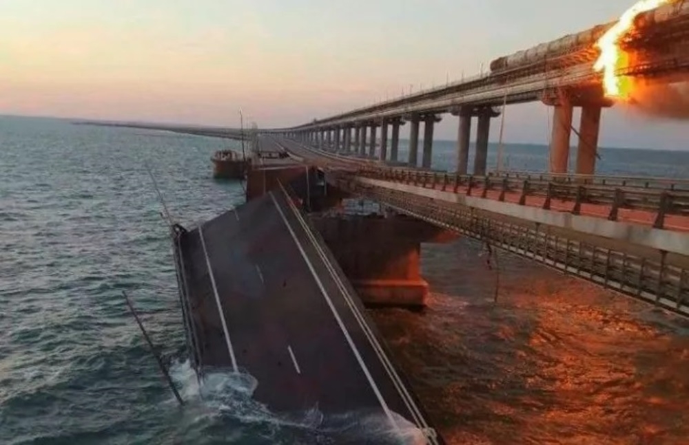 Η φωτιά σύμφωνα με τη Ρωσία ξεκίνησε από έκρηξη ενός παγιδευμένου φορτηγού στον αυτοκινητόδρομο της γέφυρας και επεκτάθηκε σε βαγόνι που κουβαλούσε καύσιμα, με συνέπεια να αποκόβει τη Μόσχα από την προσαρτημένη χερσόνησο.
