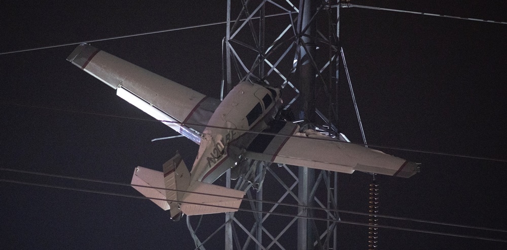Ένα μικρό αεροσκάφος συνετρίβη σε γραμμές υψηλής τάσης στο Μοντγκόμερι Βίλατζ του Μέριλαντ, 30 μίλια από την Ουάσιγκτον, γύρω στις 5.30 το απόγευμα (τοπική ώρα) υπό συνθήκες ομίχλης και βροχής.
