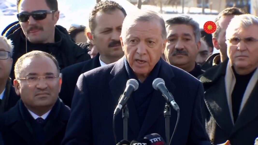 Διαχείριση της κρίσης που προέκυψε από τον σεισμό των 7,8 Ρίχτερ, με αποτέλεσμα τον τραγικό θάνατο πάνω από 21.000 ανθρώπων μόνο στην Τουρκία επιχειρεί ο Ρετζέπ Ταγίπ Ερντογάν, που επισκέφθηκε περιοχή που επλήγη από τον «Εγκέλαδο» στο Ντιγιαρμπακίρ.