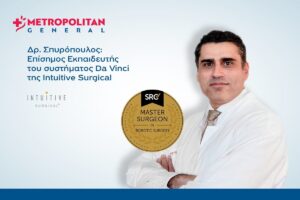 Ο Διευθυντής της κλινικής και του κέντρου Αριστείας, δρ Χαράλαμπος Σπυρόπουλος, Γενικός Χειρουργός, έχει αποκτήσει το σημαντικό διεθνές πιστοποιητικό “Master Surgeon in Hernia Surgery” (MSHS) από το Surgical Review Corporation (SRC), έναν από τους πιο έγκυρους φορείς πιστοποίησης χειρουργικών δεξιοτήτων παγκοσμίως. Ταυτόχρονα, ως χειρουργός αριστείας στον τομέα αυτό (Surgeon of Excellence) έχει και τη διεύθυνση του επίσης πιστοποιημένου από τον SRC κέντρου αριστείας χειρουργικής κηλών του Metropolitan General (Center of Excellence). Επιπλέον, ο δρ Σπυρόπουλος διακρίθηκε ως Επίσημος Εκπαιδευτής (Proctor) του συστήματος ρομποτικής χειρουργικής Da Vinci της εταιρείας Intuitive Surgical, γεγονός που τον κατατάσσει ανάμεσα στους ελάχιστους χειρουργούς στην Ελλάδα με ρόλο καθοδήγησης και εκπαίδευσης συναδέλφων σε προηγμένες ρομποτικές τεχνικές.